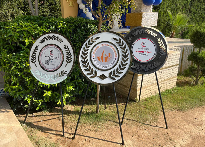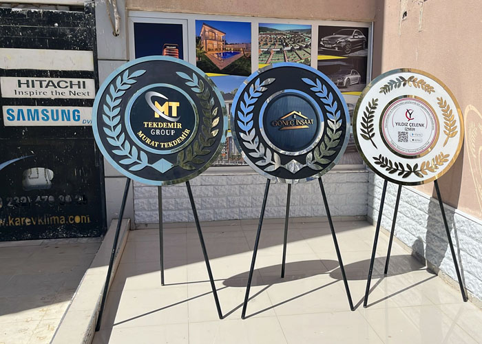 İlk etapta logonuza uygun tasarımlar yapılmakta ve sizlerin beğenisine sunulmaktadır. Tercih ettiğiniz çelenk tasarımı imalata alınmaktadır.